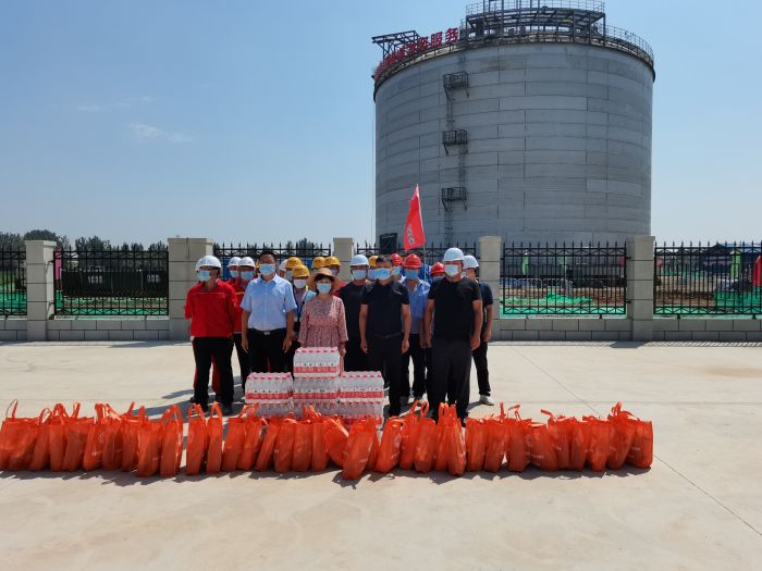 活動由工會主席路敏帶隊(duì),相繼深入自來水公司管網(wǎng)平差項(xiàng)目、能源公司天然氣儲氣庫項(xiàng)目、房地產(chǎn)公司民兵訓(xùn)練基地項(xiàng)目、黃河水務(wù)公司北灣調(diào)蓄池項(xiàng)目、華州區(qū)自來水公司,路敏代表集團(tuán)黨委對在炎熱的夏日中仍舊不辭辛苦的奮戰(zhàn)在施工一線的建筑工人表示高度的贊揚(yáng)及肯定,并為一線職工、農(nóng)民工送上茶葉、風(fēng)油精、藿香正氣水、口罩等防暑降溫用品共250余份。每到一處,路敏都與一線員工詳細(xì)交流,了解工作生活情況,感謝他們?yōu)榧瘓F(tuán)發(fā)展做出的貢獻(xiàn),并叮囑他們一定要注意防暑降溫與疫情防控,保障自身和家人身體健康。