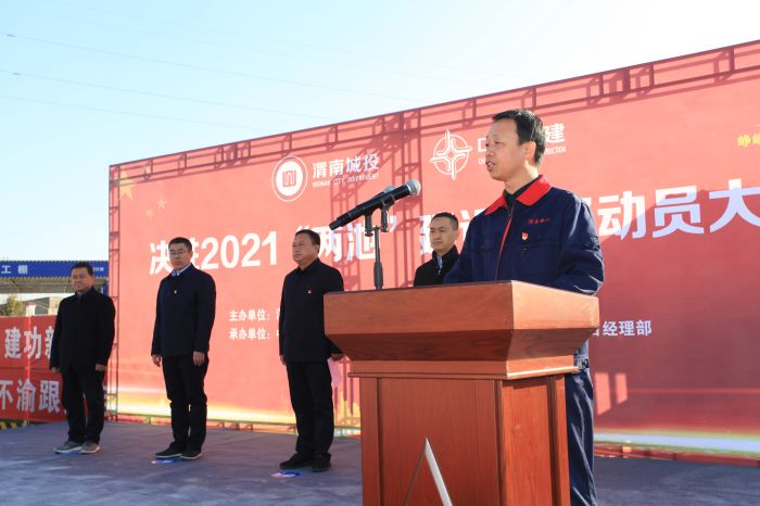 為牢固樹立“以人民為中心”的發(fā)展思想,踐行“我為群眾辦實事”,全力推進項目順利完成。11月30日上午,“決戰(zhàn)2021,'兩池'建設(shè)攻堅動員大會”在市排水公司雨水調(diào)蓄池項目現(xiàn)場舉行,市城投集團黨委副書記、副董事長、總經(jīng)理唐曉,副總經(jīng)理、總工程師王剛,中交一公局二公司副總經(jīng)理賀曉宇,鴻民國際工程咨詢公司賈天民以及參建各方代表參加。市排水公司黨總支書記、總經(jīng)理張鵬超主持。