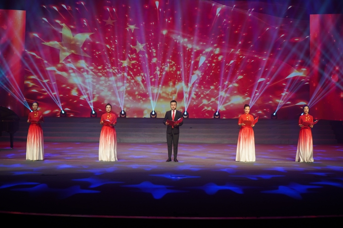 本次匯演由大合唱、詩(shī)朗誦、舞蹈、情景劇等15個(gè)節(jié)目組成;顒(dòng)在開場(chǎng)舞《莊嚴(yán)的宣誓》中拉開帷幕。八支合唱團(tuán)近400名演員分別演唱了《唱支山歌給黨聽》《祖國(guó)不會(huì)忘記》《沒有共產(chǎn)黨就沒有新中國(guó)》《向往》等紅色歌曲。來自集團(tuán)各子公司表演者,通過一個(gè)個(gè)精彩紛呈的節(jié)目讓現(xiàn)場(chǎng)氣氛高潮迭起,展示了近年來市城投集團(tuán)堅(jiān)持“黨建鑄魂 匠心筑企”黨建品牌,全面推動(dòng)“城市運(yùn)營(yíng)商”取得的實(shí)踐成果和顯著成效,集中表達(dá)了對(duì)黨、對(duì)祖國(guó)最誠(chéng)摯的祝福。
